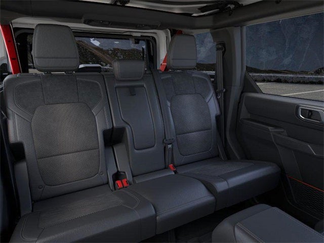 2025 Ford Bronco Raptor Ruby Red Metallic Tinted Clearcoat Raptor 3.0L EcoBoost V6 Auto High-beam Headlights, Auto-dimming Rear-View mirror, Bluetooth®, Connected Navigation, Convertible HardTop, Driver door bin, Dual front impact airbags, Emergency communication system: 911 Assist, Equipment Group 374A Lux Package, Front anti-roll bar, Front Bucket Seats, Front fog lights, Front reading lights, Hard Top Sound Deadening Headliner, Heated door mirrors, Heated front seats, Integrated roll-over protection, Interior Carbon Fiber Pack, Iphone / Droid Compatible, Leather, Leather-Trimmed/Vinyl Bucket Seats, Low Gloss Black High Coverage Fender Flares, Multi-Function Steering Wheel, Navigation system: Connected Navigation, Outside temperature display, Overhead airbag, Overhead console, Power steering, Power windows, Rear seat center armrest, Rearview Camera, Remote keyless entry, Split folding rear seat, Steering wheel mounted audio controls, SYNC, Tachometer, Tilt steering wheel, Wheels: 17 Black High Gloss-Painted Aluminum.