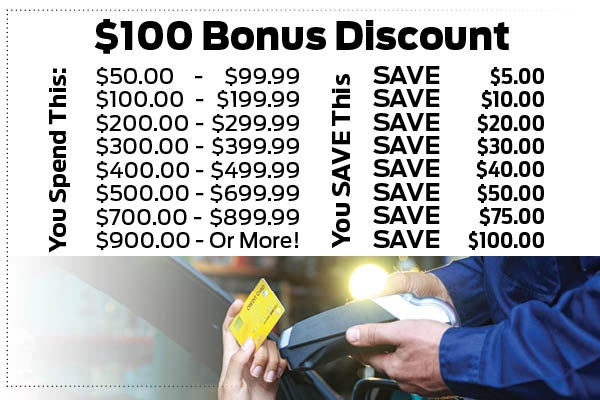 Not for tires or parts. Not valid with any other specials or offers. Must present this coupon at time of write up. Valid only at our service dept. No cash value. One per household. Expires 3/31/2026.