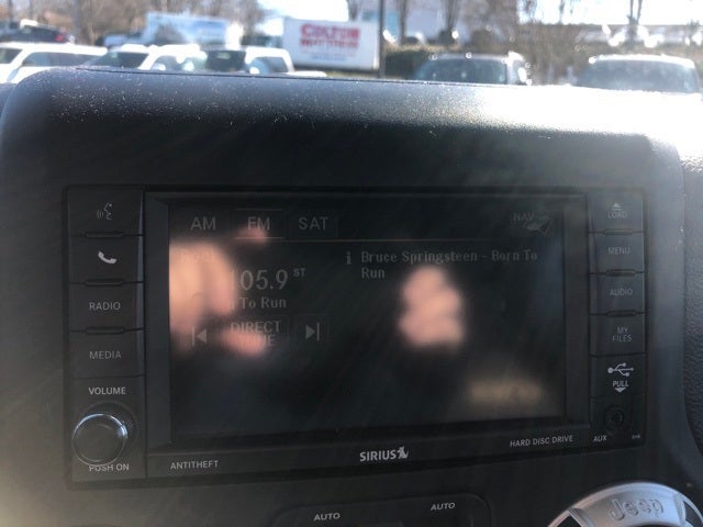 Wrangler Unlimited Sahara, 4D Sport Utility, 3.6L V6 24V VVT, 5-Speed Automatic, 4WD, Bright White Clearcoat, Black w/Cloth Bucket Seats, 40GB Hard Drive w/28GB Available, 8 Speakers, ABS brakes, Air Conditioning, Alpine 9-Speaker w/All Weather Subwoofer, Audio Jack Input for Mobile Devices, Auto-dimming Rear-View mirror, Bluetooth®, Call for a free Carfax report, CD player, Cloth Bucket Seats, Compass, Connectivity Group, Don't miss out on this deal, Driver door bin, Front anti-roll bar, Front Bucket Seats, Front Center Armrest w/Storage, Front fog lights, Front reading lights, Fully automatic headlights, GPS Navigation, Heated door mirrors, Heavy Duty Suspension w/Gas Shocks, Hurry in today, Integrated roll-over protection, Leather steering wheel, Leather Wrapped Steering Wheel, Low tire pressure warning, MOPAR Slush Mats, Occupant sensing airbag, Outside temperature display, Panic alarm, Passenger door bin, Passes NC state inspection, Power steering, Power windows, Quick Order Package 24G, Radio data system, Radio: Uconnect 130 AM/FM/CD/MP3, Rear anti-roll bar, Recent Asheville Ford trade, Remote keyless entry, Security system, Speed control, Split folding rear seat, Steering wheel mounted audio controls, Tachometer, Tilt steering wheel, Tire Pressure Monitoring Display, Traction control, Trip computer, Vehicle Information Center, Wow, check out those miles!!.