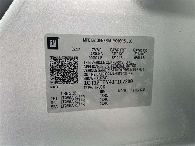 2018 GMC Sierra 2500HD SLT SLT Quicksilver Metallic Duramax 6.6L V8 Turbodiesel 4WD Allison 1000 6-Speed Automatic