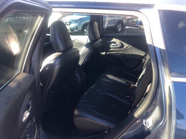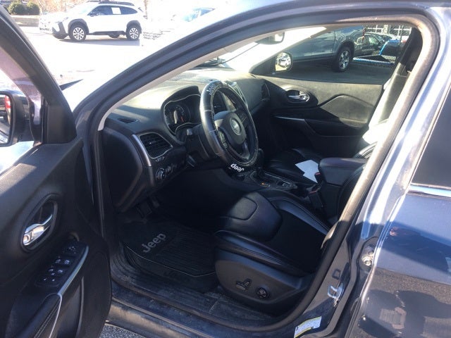Cherokee Latitude Plus, 4D Sport Utility, 2.4L I4, 9-Speed 948TE Automatic, 4WD, Slate Blue Pearlcoat, Black w/Cloth/Premium Vinyl Bucket Seats or Premium Leather Trimmed Bucket Seats, 115V Auxiliary Power Outlet, 4-Wheel Disc Brakes, 6 Speakers, ABS brakes, Air Conditioning, Air Conditioning ATC w/Dual Zone Control, All-Season Floor Mats, AM/FM radio: SiriusXM, Apple CarPlay/Android Auto, Auto-Dimming Rear-View Mirror, AutoStick Automatic Transmission, Auxiliary Transmission Oil Cooler, Brake assist, Bumpers: body-color, Call for a free Carfax report, Cloth/Premium Vinyl Bucket Seats, Cold Weather Group, Comfort/Convenience Group, Compass, Delay-off headlights, Driver door bin, Driver vanity mirror, Dual front impact airbags, Dual front side impact airbags, Electronic Stability Control, Engine Block Heater, Four wheel independent suspension, Front anti-roll bar, Front Bucket Seats, Front Center Armrest, Front fog lights, Front reading lights, Fully automatic headlights, Heated door mirrors, Heated Front Seats, Heated Steering Wheel, Humidity Sensor, Integrated Voice Command w/Bluetooth®, Iphone / Droid Compatible, Knee airbag, Low tire pressure warning, Normal Duty Suspension, Occupant sensing airbag, Outside temperature display, Overhead airbag, Overhead console, Panic alarm, ParkView Rear Back-Up Camera, Passenger door bin, Passenger vanity mirror, Passes NC state inspection, Power door mirrors, Power driver seat, Power Liftgate, Power steering, Power windows, Premium Air Filter, Quick Order Package 2BD, Radio data system, Radio: Uconnect 4 w/7 Display, Rear anti-roll bar, Rear reading lights, Rear seat center armrest, Rear window defroster, Rear window wiper, Recent Asheville Ford trade, Remote keyless entry, Remote Start System, Roof rack: rails only, Security Alarm, SiriusXM Satellite Radio, Speed control, Speed-sensing steering, Split folding rear seat, Spoiler, Steering wheel mounted audio controls, Stop-Start Multiple VSM System, Tachometer, Telescoping steering wheel, Traction control, Trip computer, Turn signal indicator mirrors, Universal Garage Door Opener, USB Host Flip, Variably intermittent wipers, Wheels: 17 x 7 Satin Carbon Aluminum, Windshield Wiper De-Icer.