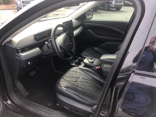 Certified. Mustang Mach-E California Route 1, 4D Sport Utility, Electric Motor, Single-Speed Automatic, RWD, Shadow Black, Black Onyx w/ActiveX Bucket Seats, 4-Wheel Disc Brakes, 6 Speakers, ABS brakes, ActiveX Bucket Seats, Air Conditioning, All Routine Maintenance Up to Date, AM/FM radio: SiriusXM, Apple CarPlay/Android Auto, Auto High-beam Headlights, Auto-dimming Rear-View mirror, Automatic temperature control, Bluetooth®, Brake assist, Bumpers: body-color, Call for a free Carfax report, Cargo Area Protector, Delay-off headlights, Don't miss out on this deal, Driver door bin, Driver vanity mirror, Dual front side impact airbags, Electronic Stability Control, Emergency communication system: 911 Assist, Equipment Group 200A, Extended Warranty Available, Exterior Parking Camera Rear, Four wheel independent suspension, Front & Rear Floor Liners, Front anti-roll bar, Front Bucket Seats, Front Center Armrest, Front dual zone A/C, Front reading lights, Fully automatic headlights, Garage door transmitter, Heated door mirrors, Hurry in today, Illuminated entry, Interior Protection Package (Pre-Installed), Iphone / Droid Compatible, Knee airbag, Leather, Low tire pressure warning, Memory seat, Multi-Function Steering Wheel, Navigation system: Connected Navigation, Occupant sensing airbag, Outside temperature display, Overhead airbag, Overhead console, Panic alarm, Passenger door bin, Passenger vanity mirror, Passes NC state inspection, Power door mirrors, Power driver seat, Power steering, Power windows, Radio data system, Rain sensing wipers, Rear anti-roll bar, Rear seat center armrest, Rear window defroster, Rear window wiper, Rearview Camera, Recent Asheville Ford trade, Remote keyless entry, Security system, SiriusXM Radio w/360L, Speed-sensing steering, Speed-Sensitive Wipers, Split folding rear seat, Spoiler, Steering wheel mounted audio controls, SYNC, SYNC 4A w/Enhanced Voice Recognition, Telescoping steering wheel, Tilt steering wheel, Traction control, Trip computer, Variably intermittent wipers, Wheels: 18 High Gloss Black Aluminum.