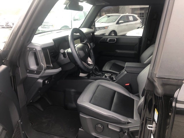 Certified. Bronco Big Bend, 4D Sport Utility, 2.3L EcoBoost I-4, 10-Speed Automatic, 4WD, Shadow Black, Dark Space Gray w/Black Onyx w/Marine Grade Vinyl Bucket Seats, 17BLK ALM BEADLCK ALLOY RING, 4-Wheel Disc Brakes, 7 Speakers, ABS brakes, Air Conditioning, All Routine Maintenance Up to Date, AM/FM radio: SiriusXM with 360L, AM/FM Stereo, Auto High-beam Headlights, Bluetooth®, Brake assist, Call for a free Carfax report, Compass, Delay-off headlights, Don't miss out on this deal, Driver door bin, Driver vanity mirror, Dual front side impact airbags, Electronic Stability Control, Emergency communication system: 911 Assist, Equipment Group 221A Standard Package, Extended Warranty Available, Exterior Parking Camera Rear, Front anti-roll bar, Front Bucket Seats, Front Center Armrest, Front fog lights, Front reading lights, Front wheel independent suspension, Fully automatic headlights, Heated door mirrors, Hurry in today, Illuminated entry, Includes the Remainder of the Factory Warranty, Integrated roll-over protection, Iphone / Droid Compatible, Low tire pressure warning, Multi-Function Steering Wheel, Outside temperature display, Overhead airbag, Overhead console, Panic alarm, Passenger door bin, Passenger vanity mirror, Passes NC state inspection, Power door mirrors, Power steering, Power windows, Radio data system, Rearview Camera, Recent Asheville Ford trade, Remote keyless entry, Security system, SiriusXM Radio w/360L, Speed control, Split folding rear seat, Steering wheel mounted audio controls, SYNC 4, Tachometer, Telescoping steering wheel, Tilt steering wheel, Traction control, Variably intermittent wipers.