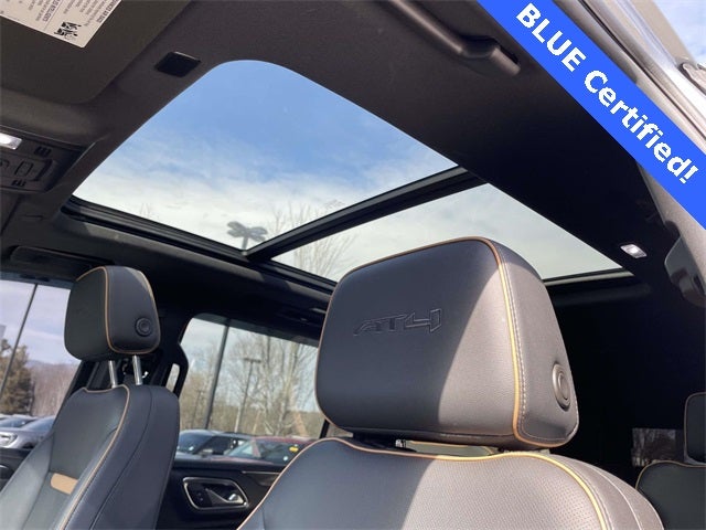 Certified. Yukon XL AT4, 4D Sport Utility, EcoTec3 6.2L V8, 10-Speed Automatic with Overdrive, 4WD, Sterling Metallic, Jet Black w/Perforated Leather Seating Surfaces, 12-Way Power Seat Adjusters, 15 Diagonal Multi-Color Head-Up Display, 1st & 2nd Rows Premium Floor Liners (LPO), 2 Presets For Outside Rearview Mirrors, 3rd Row 60/40 Power-Folding Split-Bench Seat, 3rd Row All-Weather Floor Liners (LPO), 3rd Row Seat, 3rd row seats: split-bench, 4-Wheel Disc Brakes, 9 Speakers, ABS brakes, Adaptive suspension, Air Conditioning, All Routine Maintenance Up to Date, All-Weather Cargo Mat (LPO), AM/FM radio: SiriusXM with 360L, Apple CarPlay/Android Auto, AT4 Premium Package, Auto High-beam Headlights, Auto-dimming door mirrors, Auto-dimming Rear-View mirror, Auto-leveling suspension, Automatic Emergency Braking, Automatic temperature control, Black Roof-Mounted Luggage Rack Side Rails, Bluetooth®, Bose 9-Speaker Stereo Audio System Feature, Brake assist, Bright Front & Rear Door Sill Plates, Bumpers: body-color, Call for a free Carfax report, Compass, Delay-off headlights, Don't miss out on this deal, Driver door bin, Dual Exhaust System, Dual front impact airbags, Dual front side impact airbags, Dual-Pane Panoramic Power Sunroof, Electronic Stability Control, Emergency communication system: OnStar and GMC connected services capable, Extended Warranty Available, Floor Console, Floor Liner Package (LPO), Following Distance Indicator, Forward Collision Alert, Four wheel independent suspension, Front anti-roll bar, Front Bucket Seats, Front dual zone A/C, Front fog lights, Front High-Approach Angle Fascia, Front Pedestrian Braking, Front reading lights, Fully automatic headlights, Garage door transmitter, Hands-Free Power Programmable Rear Liftgate, HD Surround Vision, Heated 2nd Row Outboard Position Seats, Heated door mirrors, Heated Driver & Front Passenger Seats, Heated front seats, Heated rear seats, Heated Steering Wheel, Heated steering wheel, Heavy-Duty Air Filter, Hill Descent Control, Hurry in today, Illuminated entry, Includes the Remainder of the Factory Warranty, Inside Rear-View Auto-Dimming Mirror, IntelliBeam Automatic High Beam On/Off, Iphone / Droid Compatible, Lane Change Alert w/Side Blind Zone Alert, Lane Keep Assist w/Lane Departure Warning, Leather, Low tire pressure warning, Magnetic Ride Control Suspension, Memory seat, Multi-Function Steering Wheel, Navigation System, Occupant sensing airbag, Outside Heated Power-Adjustable Mirrors, Outside temperature display, Overhead airbag, Overhead console, Panic alarm, Passenger door bin, Passenger vanity mirror, Passes NC state inspection, Perforated Heated & Ventilated Dr & Frt Pass Seats, Perforated Leather Seating Surfaces, Power door mirrors, Power driver seat, Power Liftgate, Power passenger seat, Power Release 2nd Row 60/40 Split-Folding Bench Seat, Power Release 2nd Row Bucket Seats, Power steering, Power Tilt & Telescopic Steering Column, Power windows, Power-Retractable Assist Steps, Preferred Equipment Group 4SB, Rain sensing wipers, Rear air conditioning, Rear Cross Traffic Alert, Rear Pedestrian Alert, Rear reading lights, Rear seat center armrest, Rear window defroster, Rear window wiper, Rearview Camera, Recent Asheville Ford trade, Red Horizontal-Mounted Recovery Hooks, Remote keyless entry, Safety Alert Seat, Security system, Speed control, Speed-sensing steering, Spoiler, Steering wheel memory, Steering wheel mounted audio controls, Sunroof / Moonroof, Technology Package, Telescoping steering wheel, Tilt steering wheel, Traction control, Universal Home Remote, Variably intermittent wipers, Ventilated front seats, Voltmeter, Wheels: 20 x 9 6-Spoke Machined Aluminum, Wireless Charging.
