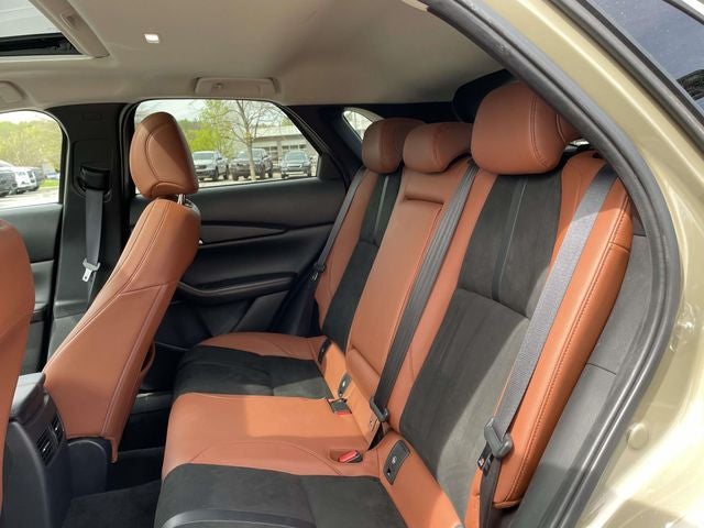 Certified. CX-30 2.5 Carbon Turbo, 4D Sport Utility, 2.5L I4, 6-Speed Automatic, AWD, Zircon Sand Metallic, Terracotta Premium Synthetic, 4-Wheel Disc Brakes, 8 Speakers, ABS brakes, Air Conditioning, AM/FM radio, AppLink/Apple CarPlay and Android Auto, Auto High-beam Headlights, Automatic temperature control, Black Mazda Logo Slimline License Plate Frame, Bluetooth®, Brake assist, Bumpers: body-color, Call for a free Carfax report, Compass, Delay-off headlights, Driver door bin, Driver vanity mirror, Dual front impact airbags, Dual front side impact airbags, Electronic Stability Control, Emergency communication system: Mazda Connected Services (3-year complimentary trial included), Extended Warranty Available, Exterior Parking Camera Rear, Front anti-roll bar, Front Bucket Seats, Front Center Armrest, Front dual zone A/C, Front reading lights, Front wheel independent suspension, Fully automatic headlights, Heated door mirrors, Heated Front Bucket Seats, Heated front seats, Hurry in today, Illuminated entry, Includes the Remainder of the Factory Warranty, Iphone / Droid Compatible, Knee airbag, Leather Shift Knob, Leather steering wheel, Leatherette Seat Trim, Low tire pressure warning, MAZDA CONNECT Infotainment System, Memory seat, Multi-Function Steering Wheel, Occupant sensing airbag, Outside temperature display, Overhead airbag, Overhead console, Panic alarm, Passenger door bin, Passenger vanity mirror, Passes NC state inspection, Power door mirrors, Power driver seat, Power moonroof, Power steering, Power windows, Radio data system, Radio: AM/FM/HD Audio System, Rear seat center armrest, Rear side impact airbag, Rear window defroster, Rearview Camera, Recent Asheville Ford trade, Remote keyless entry, Speed control, Speed-sensing steering, Split folding rear seat, Spoiler, Steering wheel mounted audio controls, Sunroof / Moonroof, Tachometer, Telescoping steering wheel, Tilt steering wheel, Traction control, Trip computer, Turn signal indicator mirrors.